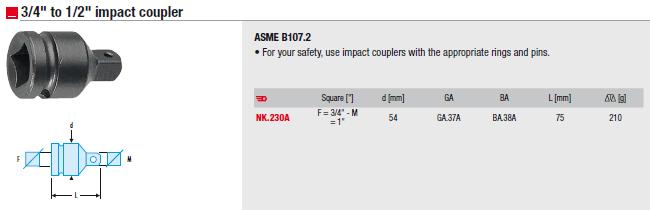 ADAPTOR SQ 3/4IN TO 1/2IN NK.230A