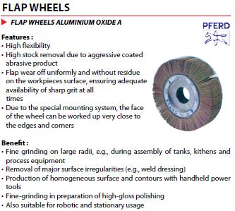 - Flaps wear off uniformly and without residue on the workpiece surface, ensuring adequate availability of sharp grit at all times.