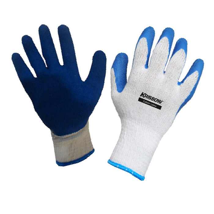 Color : White/Blue Certificate : Meets EN388 Material : Glove Cotton Mat erial : Coated Latex Size : 25X15X0.5 CM |