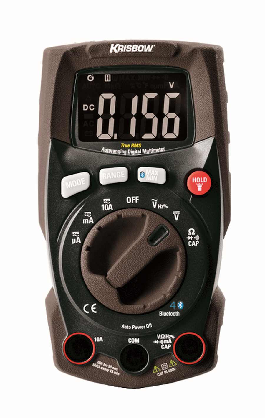 10106732 The True RMS Multimeter wirelessly transmits data to the Mapp m obile app via Bluetooth allowing you to view, save, organize, share reco rdings and take measurements from a safe distance. Visit KRISBOW MEASURI NG APP for mobile app download. Functio |