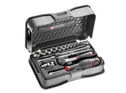 - 1 x high performance sealed 1/4 inch ratchet R.161B. 13 x 1/4 inch metric 6-point sockets R. 3.2 - 4 - 5 - 5.5 - 6 - 7 - 8 - 9 - 10 - 11 - 12 - 13 - 14 mm.