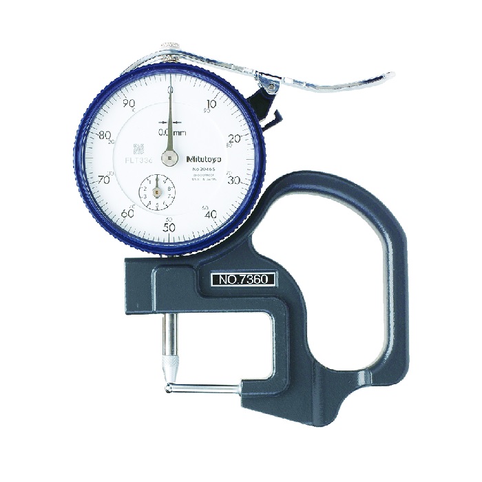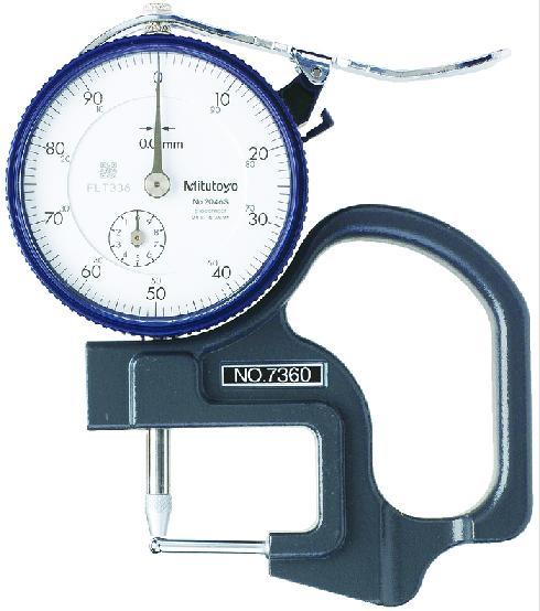 This Dial Indicator Thickness Gauge enables you to measure tube wall thi ckness, film/paper etc. with flat contact points, resp. lens thickness o r groove depth. |