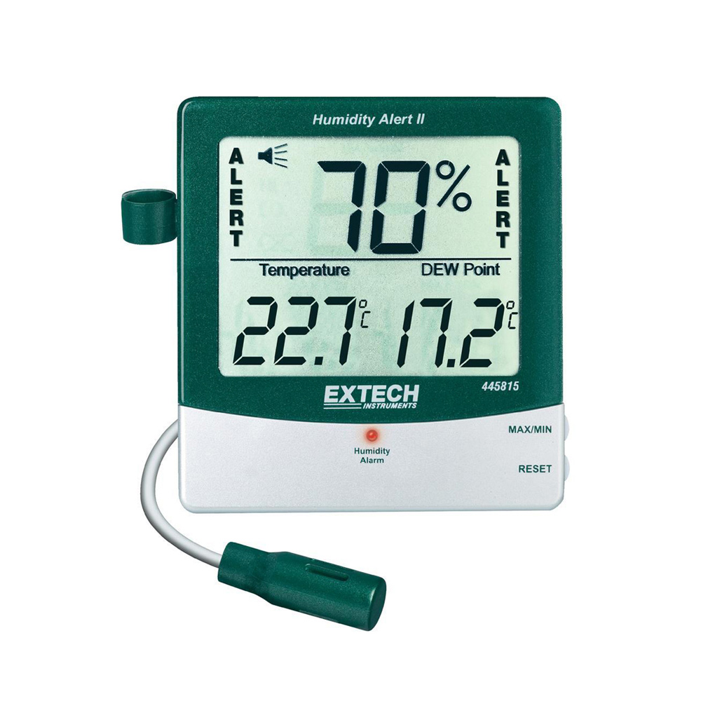 - This Humidity Meter with Alarm and Remote Probe features a large tr iple display of relative humidity, temperature and dew point.
