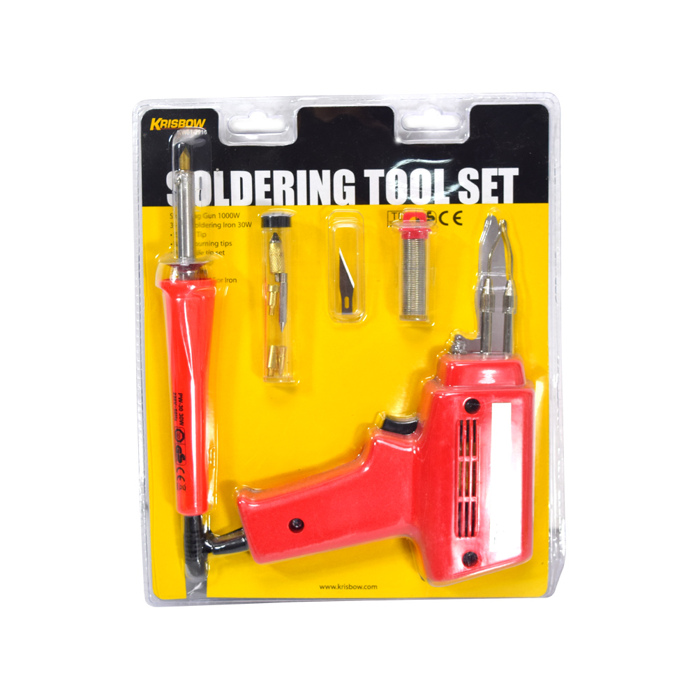 - The set includes an instant heat soldering gun, and a multipurpose soldering iron.