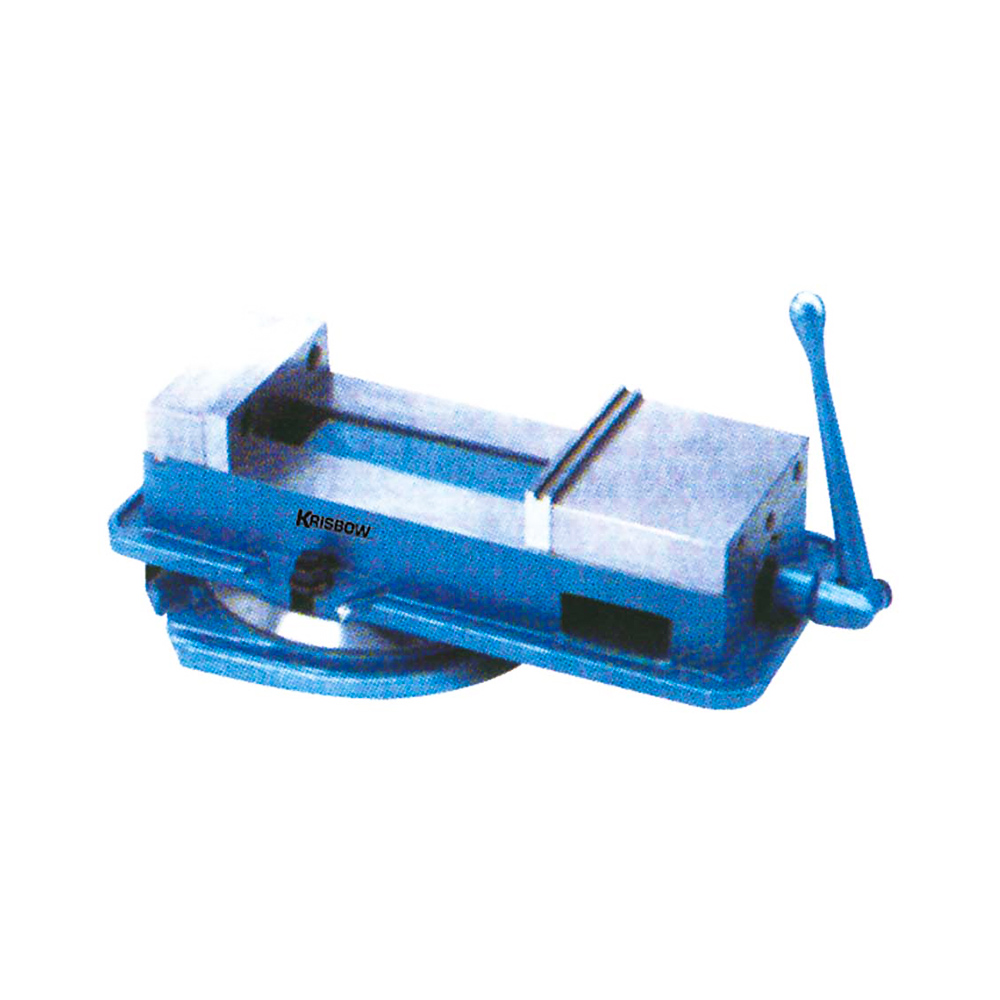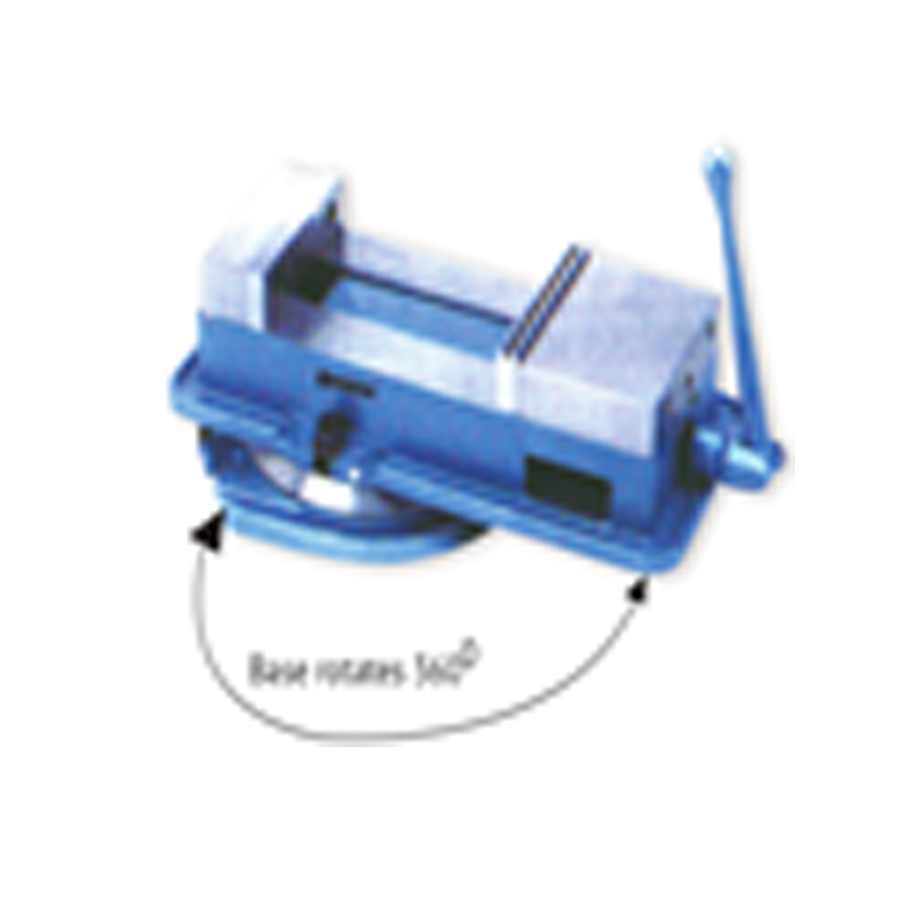 The vise can be vertically tilted to any position from 0-45 Deg. and loc k, and can be rotated 360 Deg. with a swivel base |
