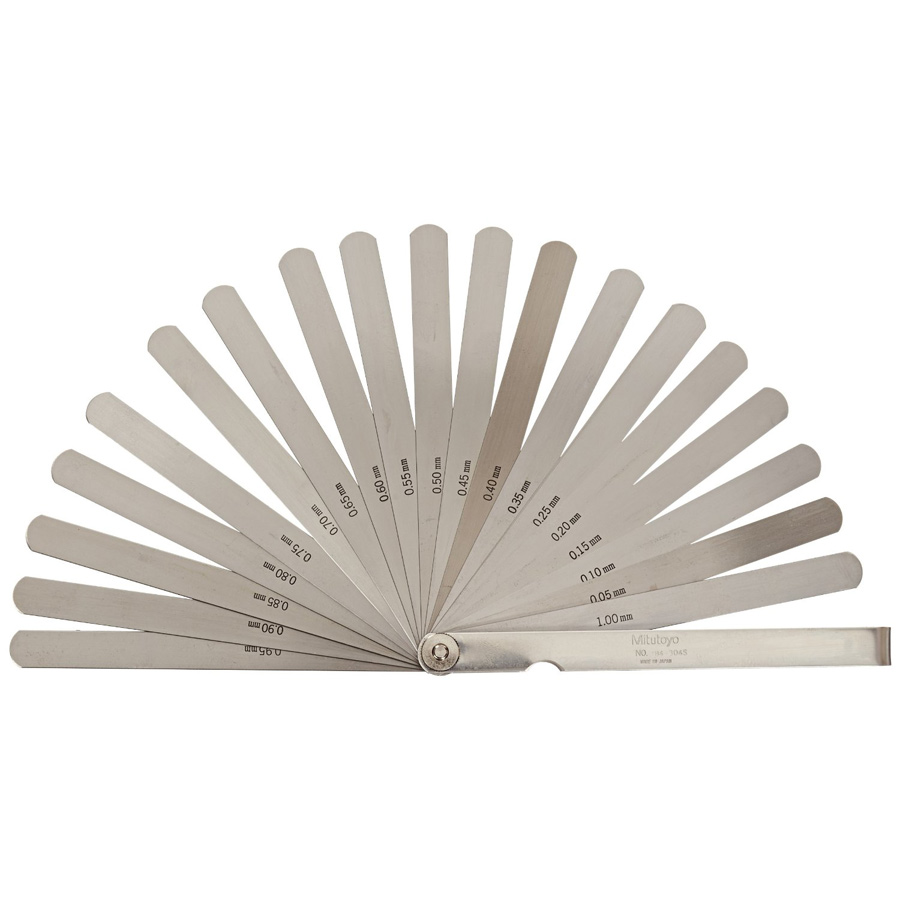 - Metric thickness gages are available with tapered leaves