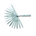 - Metric thickness gages are available with tapered leaves.